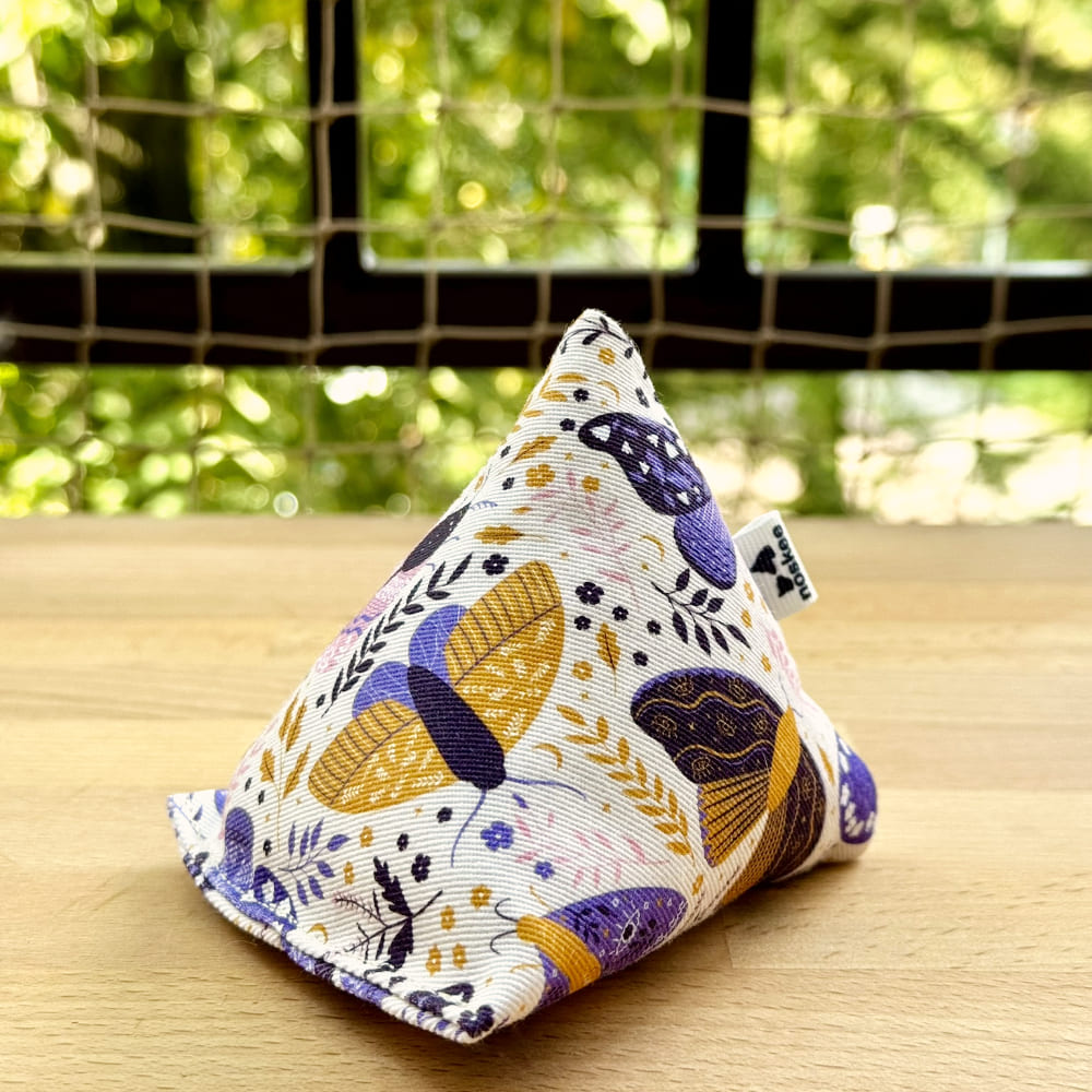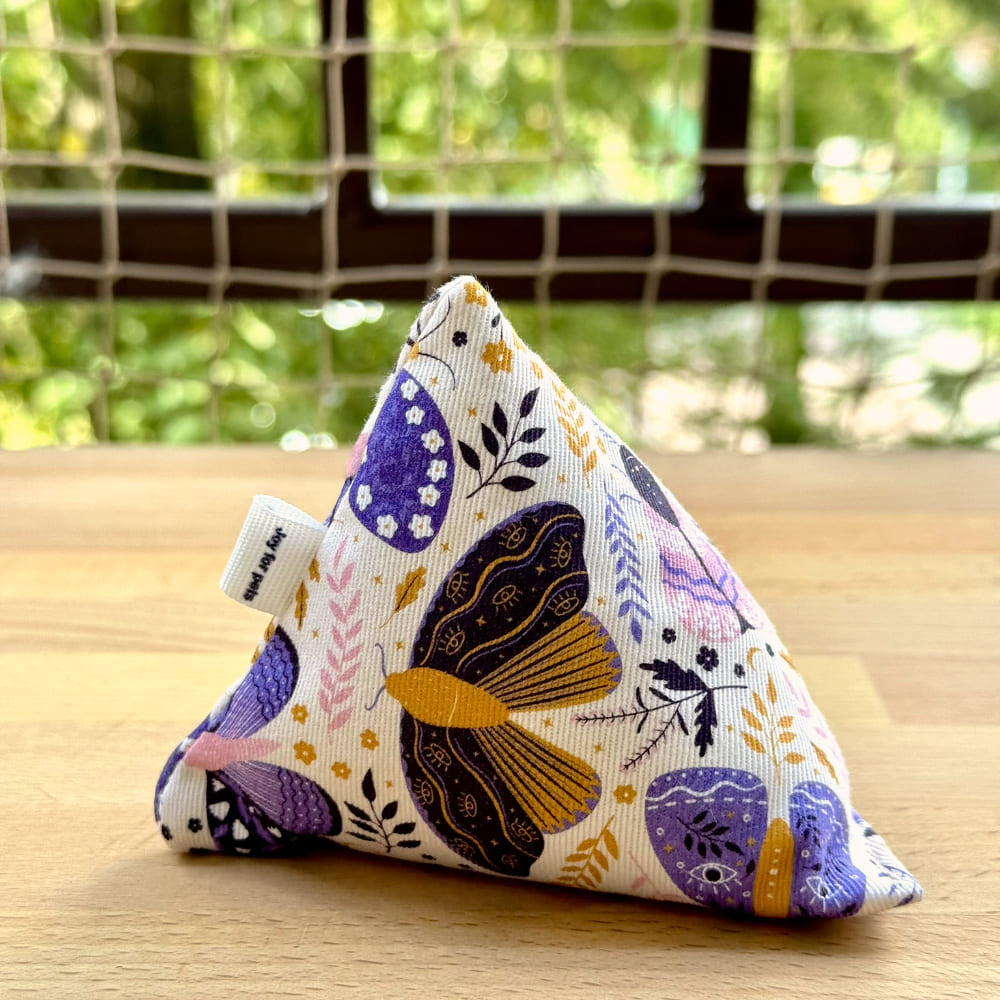 Piramidka Butterflies to więcej niż tylko zabawka – to magiczny wzór stworzony, by pomagać kotom wyciszyć emocje, poczuć bezpieczeństwo i bliskość. Jej urokliwy design z motylami i fioletami pasuje idealnie dla kocich indywidualistów.
